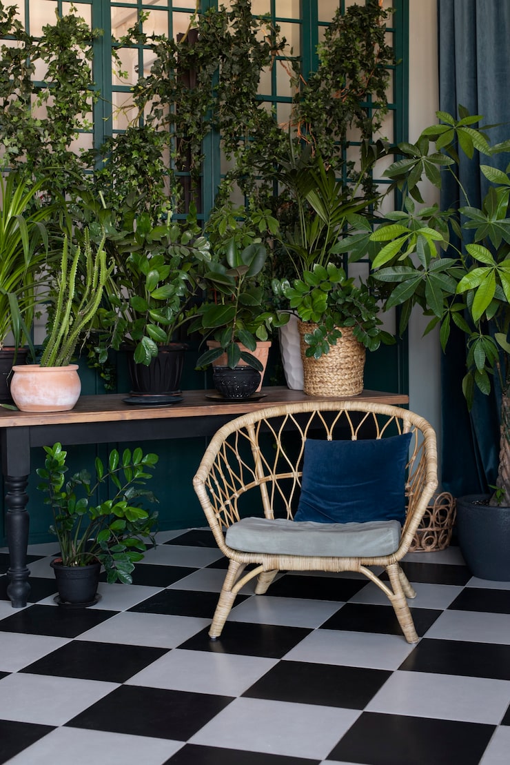Сочетание с растениями и предметами интерьера